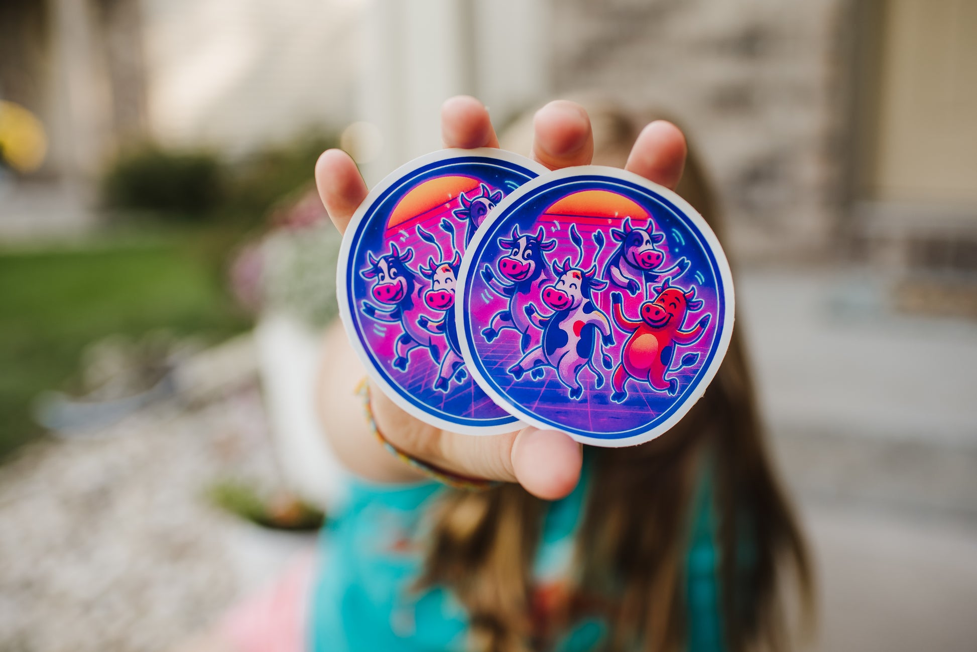 Ever seen a herd of dancing neon cows? NOW YOU HAVE! These party cows are excited for dancing, ice cream and pies. Did you know cows love pies??